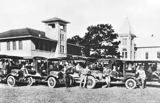 There were three cotton gins, two for short cotton and one for long cotton. A large quantity of cotton was produced in the area. There were two blacksmiths and two liveiy stables. Most folks traveled by horse and wagon, and very few had cars. Most streets were unpaved.