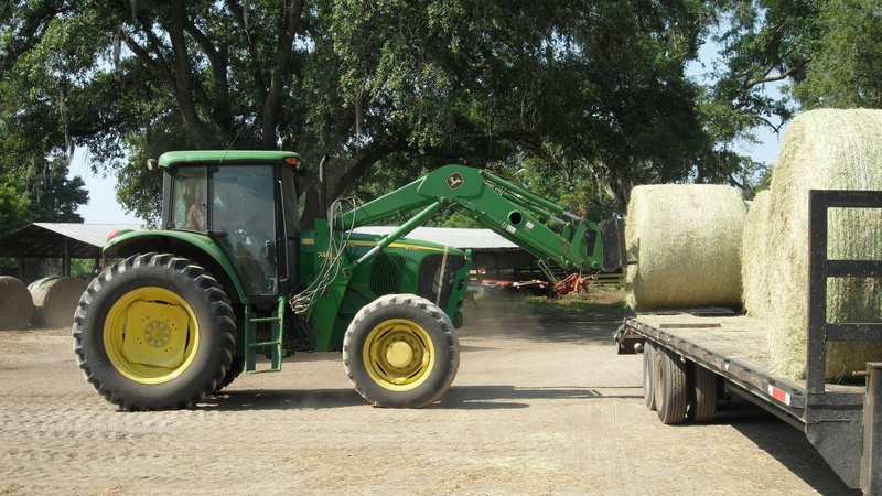 Hay prices have nearly doubled due to droughts in Florida and Texas. Tom Shaw loads hay bales at Hillside Farm, Nov. 16th, 2011, in Alachua, Florida. Alachua farmer Tom Shaw said the area hay industry has been hit with a double-whammy this year: A lot of hay has been shipped to Texas, which is suffering from a catastrophic drought even while local yields were down from North Florida's own drought. That has resulted in less hay and higher prices to feed livestock and fears of a possible shortage before the next growing season in the spring. Shaw & Shaw Farms between Jonesville and Alachua has about 1,000 acres planted in hay. They use half for their 700 head of cattle and sell the rest to feed stores, cattlemen and individuals. Normally, the farm gets three or four good cuttings per season, but was down to two or three this year and the yields on those were down, you need to cut every four weeks for your protein, but due to a lack of rain we had to let it run five or six weeks just to get enough material to cut,"